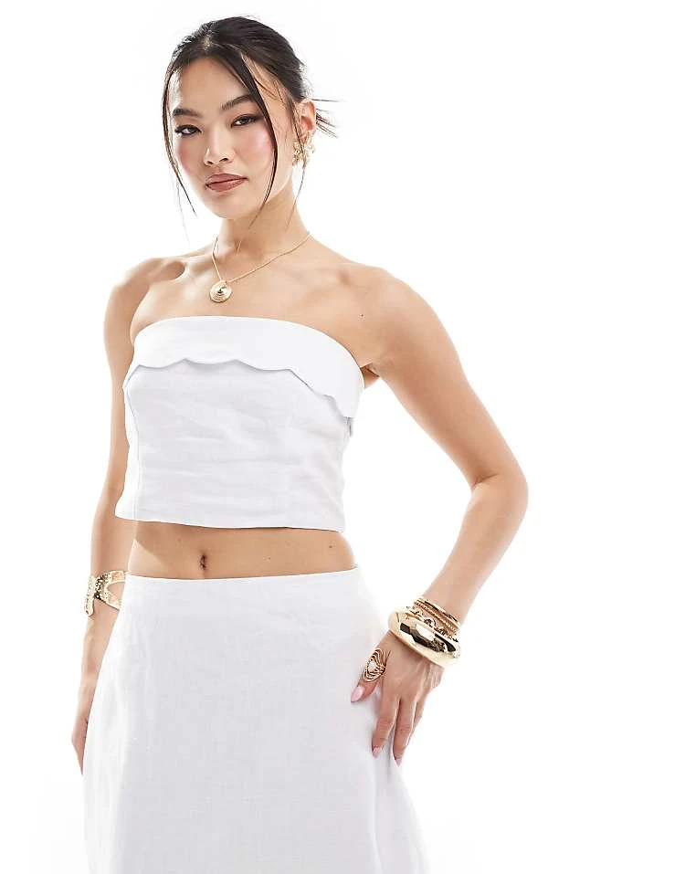 Abercrombie & Fitch Co-ord Linen Scallop Edged Top And Midi Skirt In White